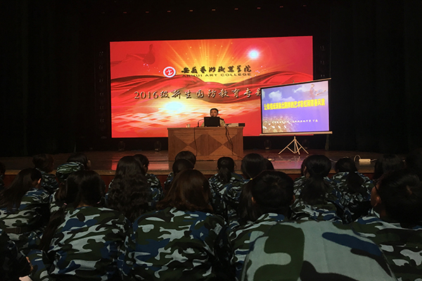 9月19日晚,学院分别在宣城路校区和丹霞路校区分别举办了2016级新生国防教育专题讲座,武警某部政治处干事、学院军训团团长丁焱上尉以“让橄榄绿润染出别样的艺术彩虹和青春风貌”为题作报告, 700多名新生接受了教育。