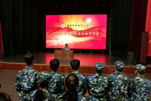 为增强大学生安全意识,提高安全防范能力,9月22日晚,学院特邀合肥市公安局国保支队五大队大队长夏仕才,分别在新、老校区为全体新生进行法制安全教育讲座。