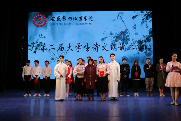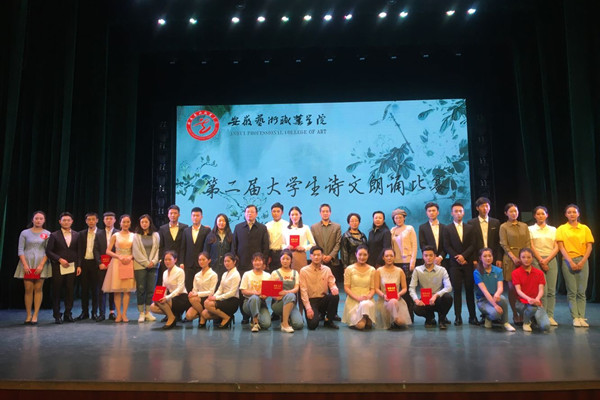 为了丰富我院大学生校园文化生活,提高学院大学生艺术素养和综合素质,进一步践行、宣传社会主义核心价值观,弘扬优秀传统文化,4月12日―13日晚,由学院主办,学生处、团委承办,各专业系、国际学院协办的“第二届大学生诗文朗诵比赛”在丹霞路校区舞蹈楼剧场举办,来自各系经过初赛选拔的19名选手参加角逐。院党委委员、副院长王红出席比赛现场,相关领导、指导老师和学生观众一起观看比赛。