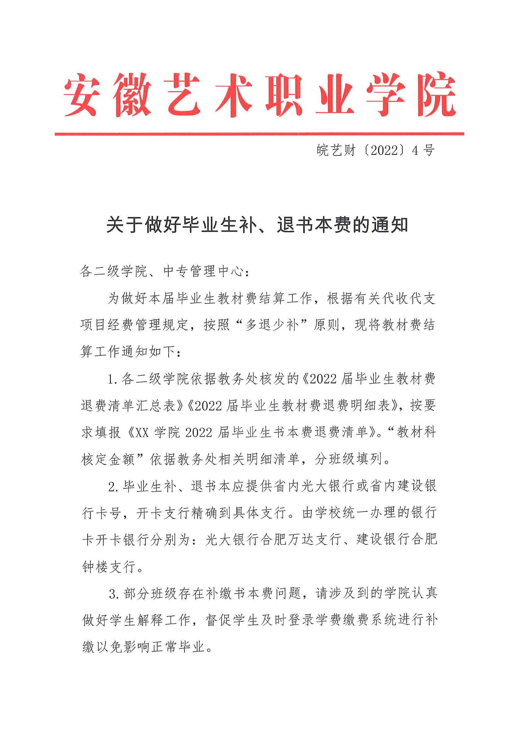 关于做好毕业生补、退书本费的通知