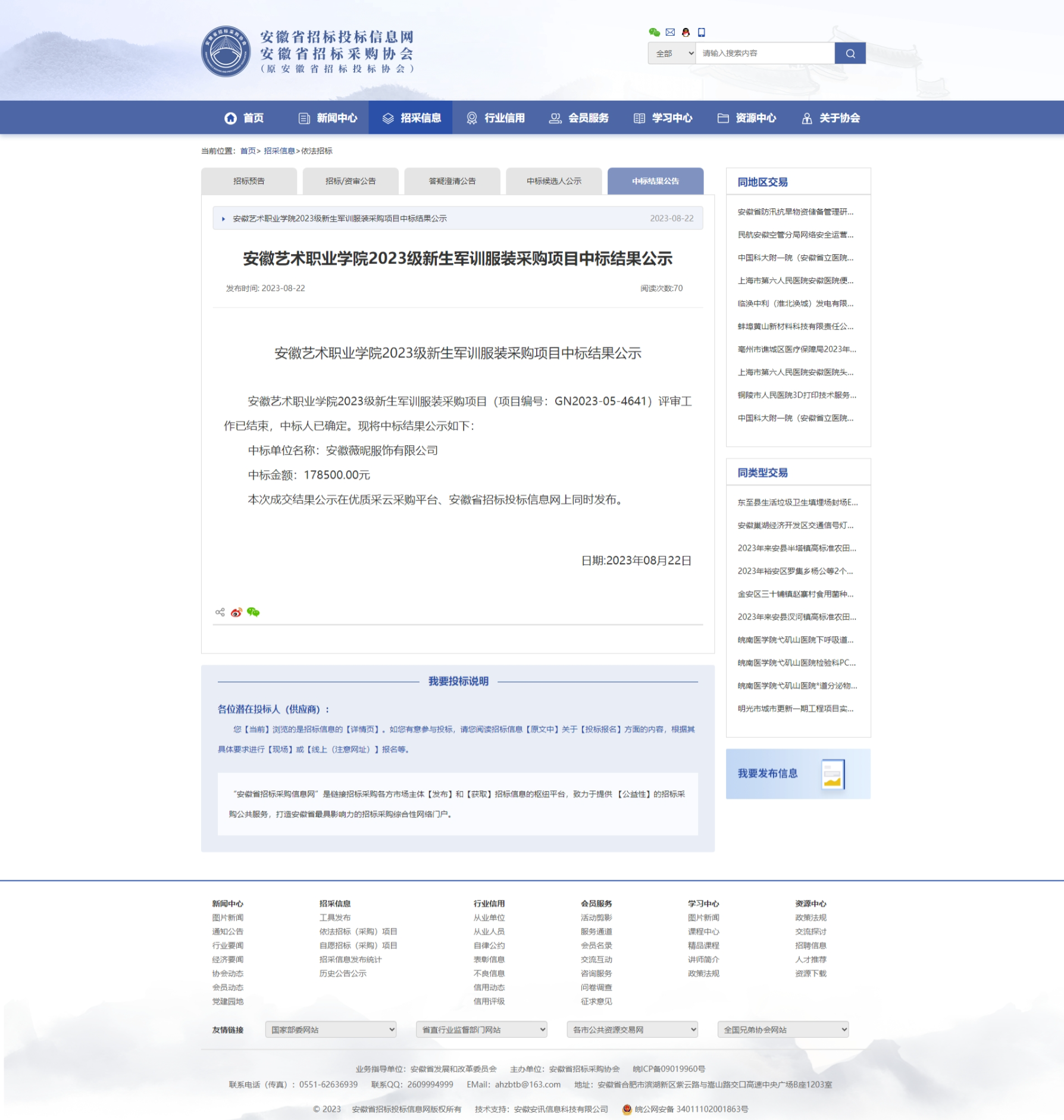 永利欢乐娱人城2023级新生军训服装采购项目中标结果公示