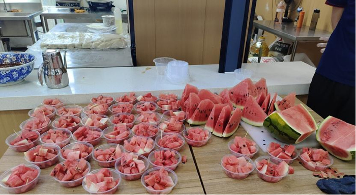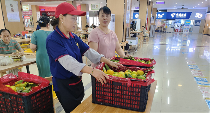 9月10日教师节当天,物业公司给广大教职工送花,食堂服务商给就餐人员分发新鲜水果