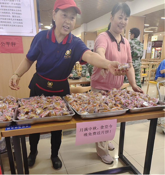 中秋节当天,食堂服务商给留校学生赠送月饼