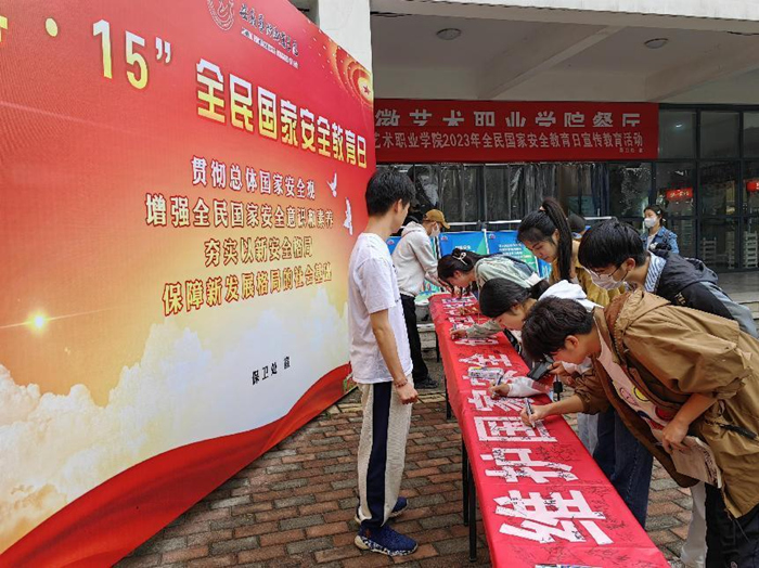 2023年4月15日是第八个全民国家安全教育日。连日来,学院以总体国家安全观为指导,突出“贯彻总体国家安全观,增强全民国家安全意识和素养,夯实以新安全格局保障新发展格局的社会基础”活动主题,认真谋划,开展内容丰富、形式多样的宣传教育活动,着力推动大安全理念深入人心、落地生根,汇聚维护国家安全的共识和力量,为构建平安校园营造良好氛围。