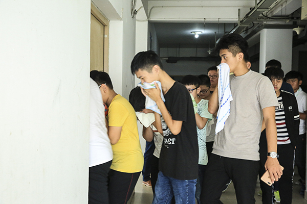 讲座结束后,开展了应急防火疏散演练。全体新生由各班主任、辅导员带队至指定逃生演练地点,准备毛巾等演练用品,由总指挥王红副院长下达演练开始口令,有序开始组织逃生。全体师生听到火灾报警,立即安全地从危险区域(教学区、校舍区)向安全区域(学院篮球场)疏散转移。班主任、辅导员带队疏散所有学生后,组织清点人数,并向总指挥报告。整场演练平稳、安全、有序,符合演练活动各项要求。