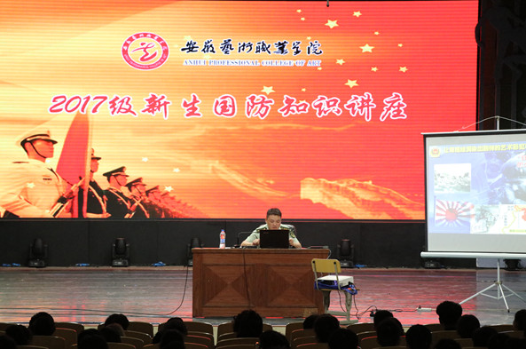 9月18日上午,学院分别在宣城路校区和丹霞路校区开展了2017级新生国防教育专题讲座,武警某部政治处丁焱上尉以“让橄榄绿润染出别样的艺术彩虹和青春风貌”为题作报告,全院 979名新生接受了国防教育。